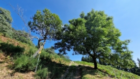 Le sentier qui mène à Cadepiano a été nettoyé récemment. Une couche d’herbe épaisse coupée, épaisse et glissante, recouvre les marches. Entre le ruisseau, à droite et les vignes à gauche, nous descendons précautionneusement à petits pas, afin d’éviter la glissade qui, comme nous avons coutume de dire, pourrait être fatale.