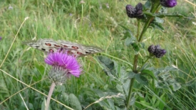 Nous sommes à 200 mètres de la voiture. Un troupeau de vaches allaitantes et leurs petits errent aux abords du sentier et sur le sentier. En nous entendant, une vache, dont le petit est en train de téter, se retourne brusquement vers nous, le regard noir. Prudents, nous faisons un détour qui nous force à longer la route du Marchairuz sur quelques centaines de mètres. Au péril de nos vies, d’ailleurs… Les voitures sportives et les motos ne ralentissent pas et s’écartent à peine.