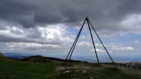 Surprise ne arrivant au Mont Tendre. Le point géodésique n’est plus que les 4 pieds métalliques. Les pans de métal noir ont été enlevés. Reviendront-ils ?