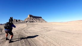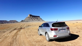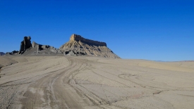 Nous quittons les lieux. Dernière photo de Factory Butte. Comme nous avons l’habitude de dire, nous ne savons pas quand nous reviendrons.