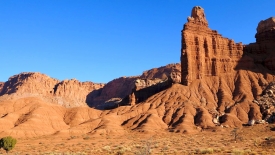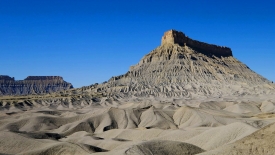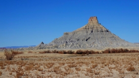 Voilà, je vous présente Factory Butte, zone interdite pendant 13 ans à la circulation et rouverte récemment, merci au bonhomme orange ! Pourquoi Factory Butte ? Parce que les colons de l’époque lui trouvèrent une ressemblance avec un moulin à laine, sis à Provo.