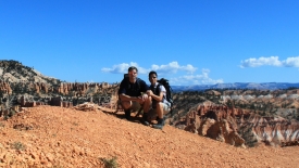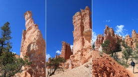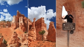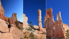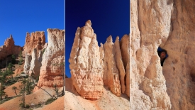 Le sentier prends son temps, serpente au milieu des hoodoos et n’optimise pas le plus court chemin entre le point A et B (1) (2). Tiens au fait, regardez qui se cache sur la photo (2). Une p’tite bouille avec des lunettes oranges (3).