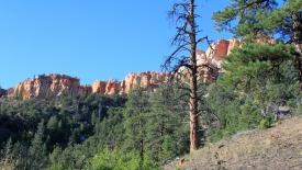 Mais, plutôt que de remonter à l’entrée du parc et d’attaquer le sentier par la descente dans le canyon, nous allons partir de Tropic et prendre une route en terre battue qui nous conduira au pieds de Bryce. De là, un sentier nous permettra d’atteindre le Fairyland Trail, puis nous remonterons sur le rim.