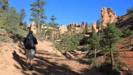 Nous empruntons le Bryce Way et garons la voiture au départ du Tropic Trail (37.613755, -112.132816) qui nous mènera au trail tant convoité.