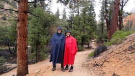 Les ponchos c’est bien pour nous protéger de la pluie mais sa caractéristique principale – l’imperméabilité – a un revers : lorsque nous arrivons en haut du rim, nous sommes trempés de l’intérieur. Un vrai sauna !