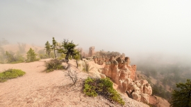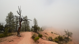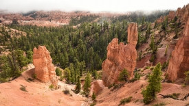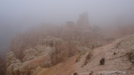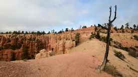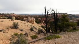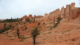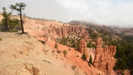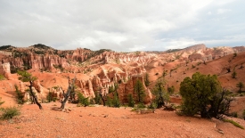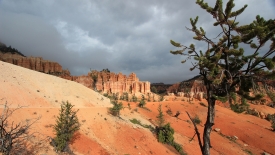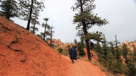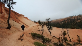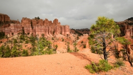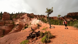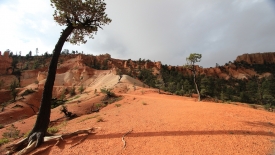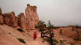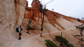 Aujourd’hui, ce sera la troisième fois que nous parcourons le Fairyland Trail. C’est le sentier le plus scénique de Bryce Canyon et je ne crois pas qu’il soit possible de s’en lasser. Les deux premières fois (un fois en 2009 puis la seconde fois en 2012, lors de nos loooooooooongues vacances), le ciel était limpide, sans un nuage. Aujourd’hui, disons que ce sera différent car nous ne pensons pas que l’éclaircie dure plus que quelques heures !