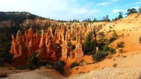 Nous émergeons vers 8h30 pour découvrir que Bryce Canyon n’est plus dans les nuages mais sous un grand trou de ciel bleu. Nous remettons à demain notre visite à Kodachrome Basin et filons au Fairyland Point (enfin, nous déjeunons avant, car le petit-déj, c’est sacré !).