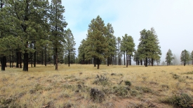 D’un côté la prairie et de grands pins bien droits, de l’autre, le canyon.