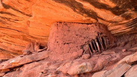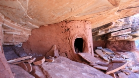 Hier, nous sommes restés à Blanding pour cause de neige. Nous sommes retournés visiter le musée, pour la 3ème fois au moins, mais avec toujours autant de plaisir. Mais ce matin le ciel est bleu, parsemé de nuages. Il suffit que le beau temps tienne la demi-journée car de toute manière, cet après-midi, nous devons reprendre la route et rentrer à Durango, dans le Colorado voisin. Nous aurons juste le temps pour une courte visite de Fallen Roof Ruins, dans Road Canyon.
