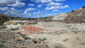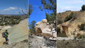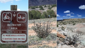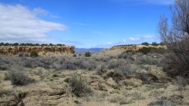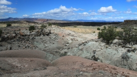 Nous rejoignons la piste pour arriver bientôt à l’entrée de Ojito Wilderness Area (1). Là, c’est sûr nous serons plus tranquilles. Un oiseau bleu nous nargue… Impossible de l’approcher de plus près (2). Le type de terrain se modifie rapidement (3).