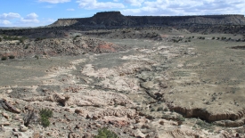 Nous quittons Farmington sous la grisaille via la US-550 en direction sud. Nous saluons de loin Angel Peak, l’entrée vers De-Na-Zin et la route qui part à Chaco.