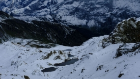 Nous mordons allègrement dans nos sandwichs, adossés au mur chaud, les visages tournés vers le soleil. Soleil qui disparaît brusquement masqué par un nuage. Nous écourtons la pause et reprenons la descente.
