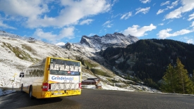 Ce dimanche matin à 8:35, nous attrapons le bus en sortant du chalet. L’idée est de monter à First et de rejoindre Bussalp en passant par le Faulhorn. Mais arrivés à Grindelwald, le bus qui monte à Bussalp est là. Du coup, Stefano change notre itinéraire et, opportunistes, nous nous y installons. Depuis notre dernier passage, il nous semble que la route est encore plus étroite. Le bus ralentit à plusieurs reprises pour négocier des virages particulièrement serrés. Nous arrivons à destination alors que l’odeur de diesel mélangée à celle du chauffage commence à perturber mes sens. Je suis contente de sortir au grand air.