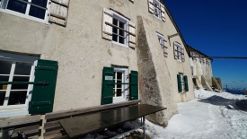 Allez savoir pourquoi la descente est plus facile que la montée. Et ce n’est pas le sucre avec lequel nous avons arrosé généreusement nos chocolats chauds qui en est la cause. Néanmoins, tout bien considéré, peut-être est-ce le sucre, qui, transformé en alcool par l’alchimie du beau temps, du vent et du froid nous fait chanter à tue-tête le refrain de Bohemian Rapsody. Et comme nous ne connaissons (et de loin) pas toutes les paroles, nous les complétons avec des histoires de lapin, de foin, de marmottes qui passent leur temps à dormir. Ceux qui étaient venus ici pour le calme et la tranquillité vont être servis.