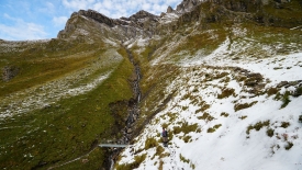 Nous laissons le sentier qui descend vers Feld et arrivons à un petit pont dont notre « topo » préféré se souviendra longtemps.