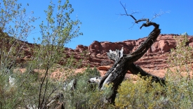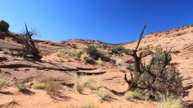 Le retour vers Fence Canyon est un peu plus pénible que l’aller : nous sommes pieds nus dans nos baskets pleines de sable, les jambes sont toutes écorchées et… la fatigue se fait sentir.