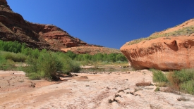 Fence Canyon est en fait un canyon qui était utilisé en son temps comme corral pour le bétail. Une barrière empêchait simplement le bétail de sortir et les vaches pouvaient ainsi y passer l’été, l’eau de l’Escalante River y étant abondante, de même que la végétation.