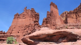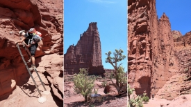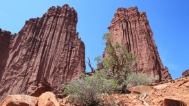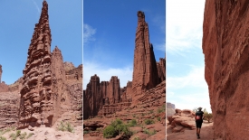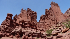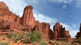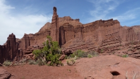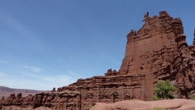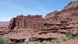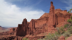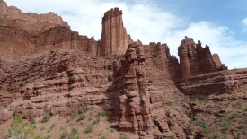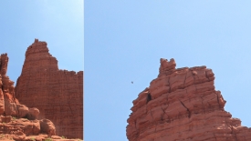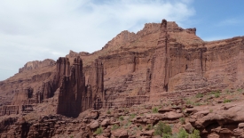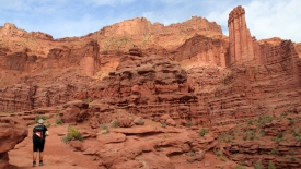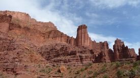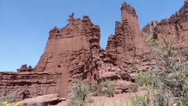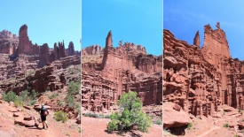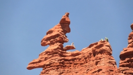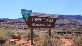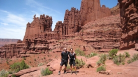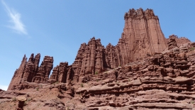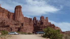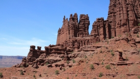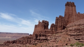 Ce matin, nous quittons Grand Junction pour Moab, à environ 2 heures de route. Nous en profitons pour faire une halte à Fisher Towers, magnifiques formations rocheuses qui ressemblent à des gratte-ciels en pierre, où nous croisons un funambule fou, Andy Lewis.