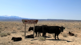 Élevage extensif de bétail. Les vaches restent au bord de la route, c’est le seul endroit où il y a un peu d’herbe verte.