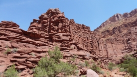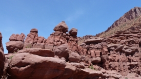 Des tours de roche rouge, tarabiscotée à souhait, où des malades font de l’escalade.