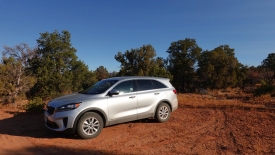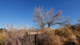 Levés à 5h30 et partis un peu avant 7 heures, nous arrivons au parking vers 8h30 après 72 km de route et 15 km de piste. Pas de surprise : le ciel est bleu Utah et il fait un petit 0°.