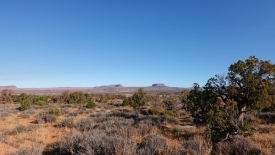 Entre ces montagnes et nous, un canyon infranchissable : le Grand Gulch. Nous imaginons souvent la réaction des pionniers mormons, qui, croyant traverser un plateau immense se sont retrouvés au bord du vide.