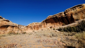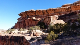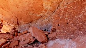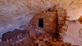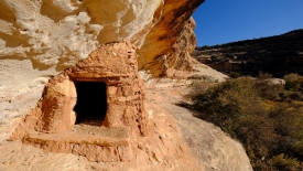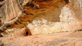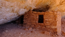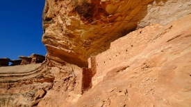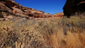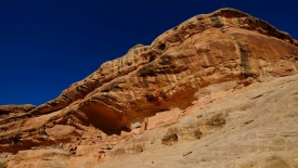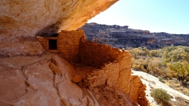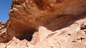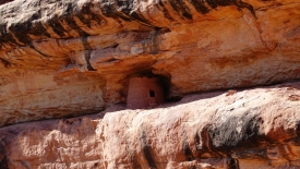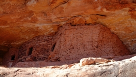 Puis, à la sortie d’un méandre, sur un ledge, inaccessibles, une série de construction en excellent état de conservation. C’est le site de Round House Ruin.