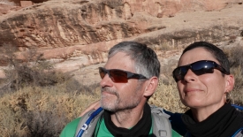 C’est à Slab Ruin que nous avions rencontré Vaughn, un guide très connu de la région. Il nous avait montré le chemin pour aller voir un joli panneau, mais faute de temps nous étions passés tout droit : il nous fallait encore sortir du canyon et remonter à la voiture. Et comme ce panneau n’a pas de nom, pour nous, c’est le Vaughn Panel. Nous avions toujours en tête de « louer » un jour les services de Vaughn de Far Out Expeditions, afin qu’il nous montre des endroits que peu connaissent, mais hélas il est parti à la retraite en 2020.