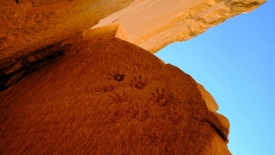 Quelques mains, trouvés sur une paroi à l’ombre, sur un replat au dessus du lit du wash.