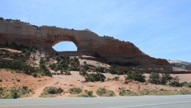 Premier stop : Wilson Arch. Et comme sortir de la voiture pour prendre la photo c’est bien trop fatiguant, eh bien, on voit la route. Tant pis !