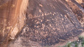 Petite distance : 80 miles que nous allons rallonger pour jouer les touristes. Un petit détour pour aller à Newspaper Rock, sur la UT-211.