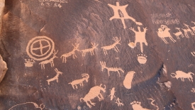 Des lézards, buffalos, cerfs, bighorn sheeps, … et des inscriptions du début du XXème siècle.