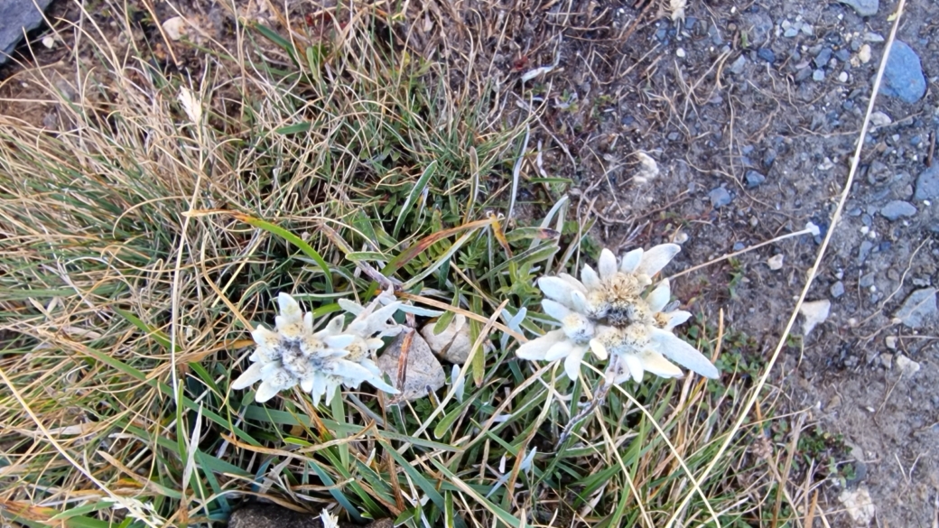 Soudain, dans l’immensité jaune, dans ma vision périphérique, je repère un point blanc. Je cesse de regarder les chaussures de Stefano et tourne la tête. Le résultat du premier coup d’œil est si inattendu que je regarde à nouveau. Mais oui, c’est bien ça ! Il s’agit bien d’edelweiss !