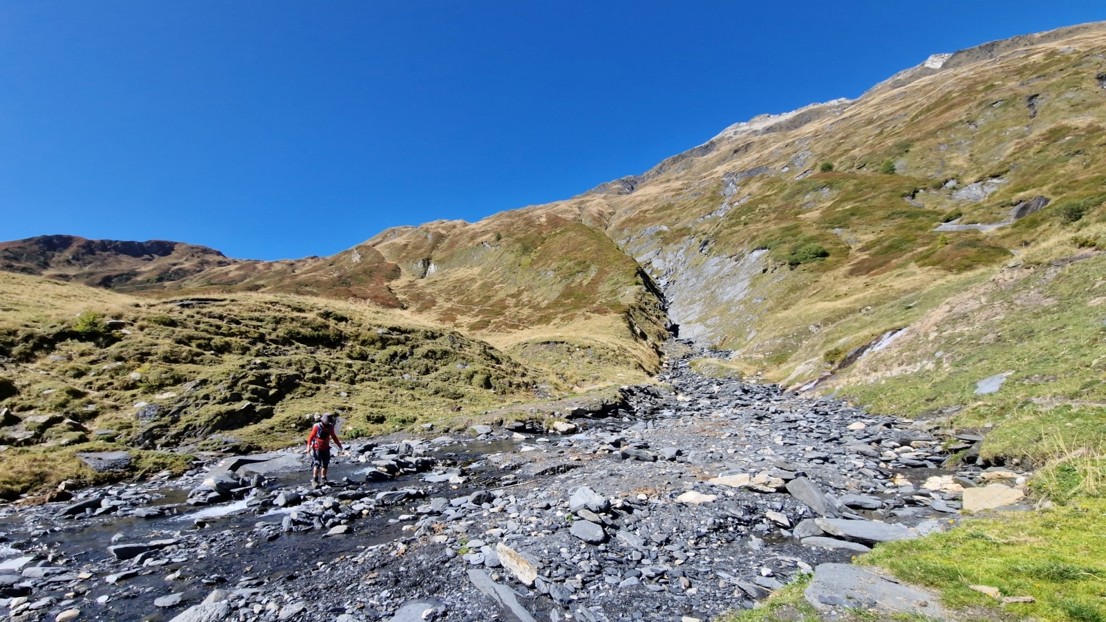 Et cette fois, le niveau du torrent qui s’en échappe est suffisamment bas pour que nous puissions le traverser. En 2023, nous étions restés prisonniers du bord ouest du lac.
