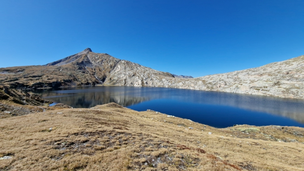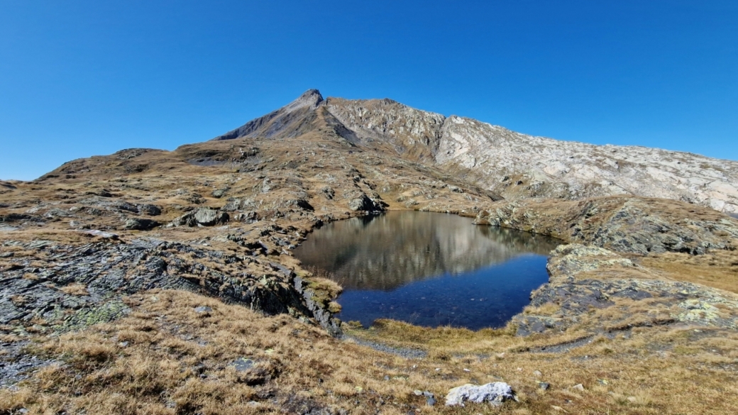 Voici un premier petit lac, avec, au fond, La Bianca, 2893 m.