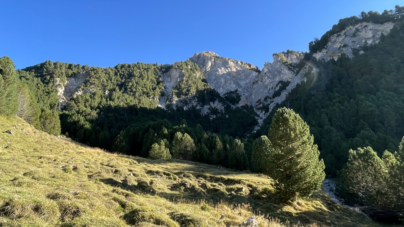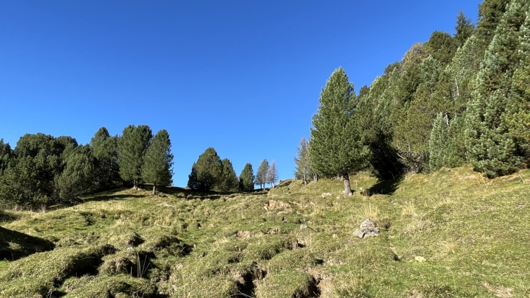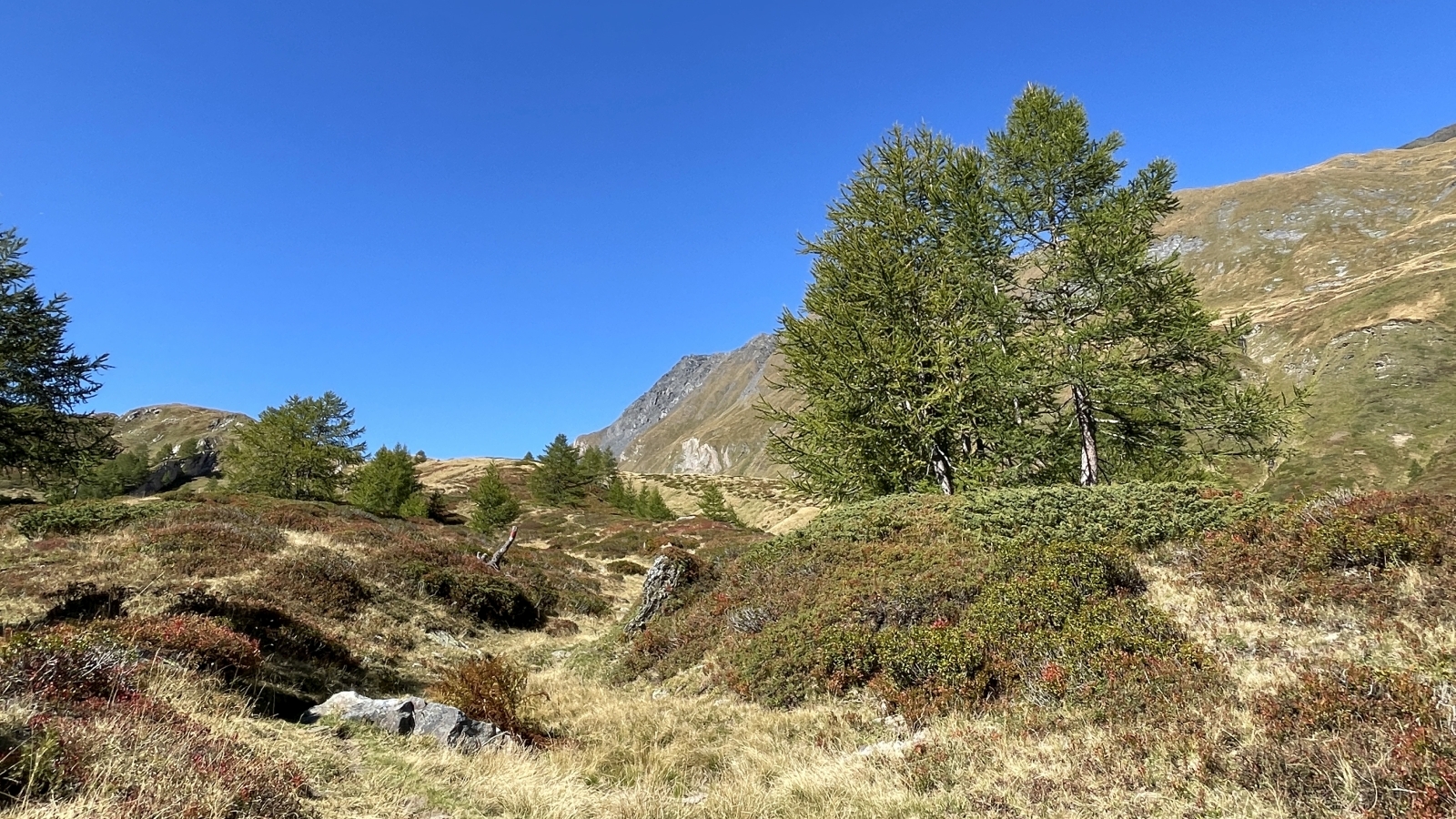 Nous descendons suffisamment pour que les mélèzes et les arolles repeuplent les champs.