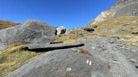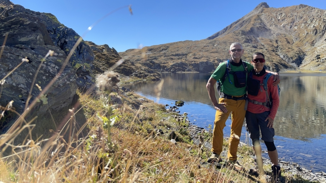 De notre première visite, en 2023, Stefano n’avait pas vraiment de souvenirs de la montée, à part le fait que la première partie du sentier avait récemment refaite et ressemblait à une « autoroute ». Mes souvenirs à moi sont beaucoup plus vifs et depuis que je sais que nous revenons au lago Retico, je me prépare mentalement à absorber 400 mètres de dénivelé avec une pente moyenne de 24°. Bon écrit sur le papier, 24° ce n’est vraiment pas bézef. Mais ici, dans la vraie vie, c’est un mur à gravir. Même Stefano a de la peine. C’est dire.