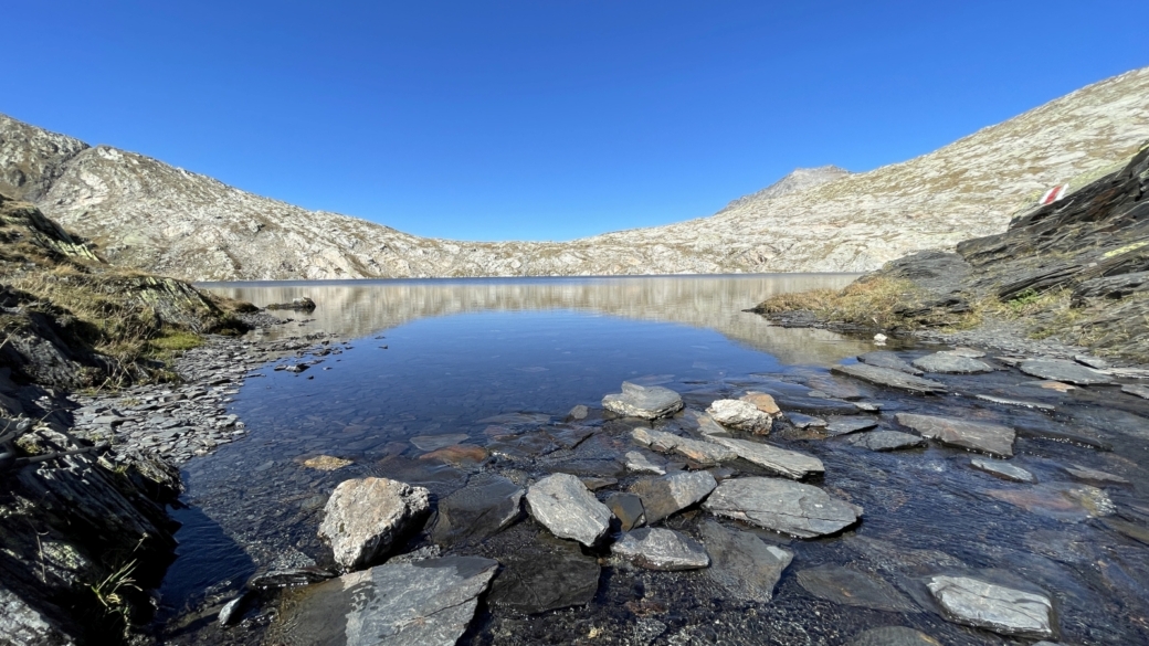 Nous revenons sur nos traces de 2023 où la météo n’avait pas été très clémente. Nous n’avons que peu de temps – 2 jours pleins de randonnée devant nous – et optons pour un tracé un peu exigeant : la Gana Negra suivie du lago Retico. Le ciel bleu infini nous promet de merveilleux panoramas.
