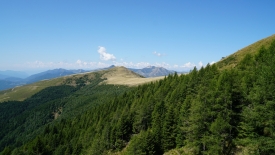 Nous contournons le Monte Bar par le nord, via une route forestière, et arrivons à l’Alpe Crocc.