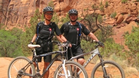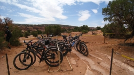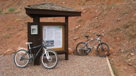 3 heures plus tard, nous arrivons à Gemini Bridges. Un rack permet de “garer” les vélos car l’accès aux ponts se fait à pied.