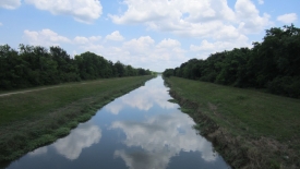 Nous retrouvons la digue et partons vers le Sud jusqu’à Westheimer. Nous traversons le bayou (sur le pont) et remontons au Nord, de l’autre côté de la berge.
