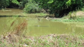 Nous restons là, un moment à observer, à une distance respectable de la berge, quand même. Le doute est levé lorsqu’un des objets flottants non-identifiés disparaît et que quelques bulles remontent à la surface.