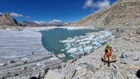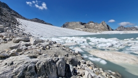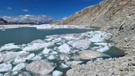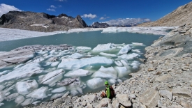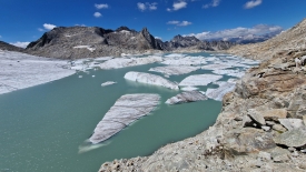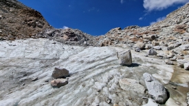 Cette langue du glacier est désormais « orpheline ». Jusqu’en 2008, le glacier recouvrait encore le col du Gerenpass. La fonction « Voyage dans le temps » des cartes topographiques de la Confédération suisse permet de vérifier aisément le retrait du glacier. Une fois la carte affichée, il suffit de décocher l’option « SWISSIMAGE Voyage dans le temps » dans le menu flottant, sur la partie de gauche de l’écran.