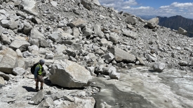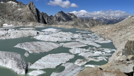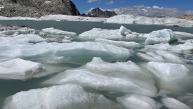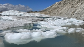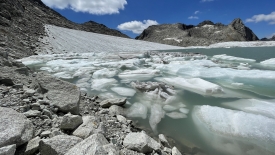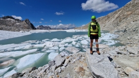 Le glacier est moribond. Sa longueur maximale doit être de deux à trois mètres. Dire qu’avant il s’étirait et remontait presque jusqu’au sommet de la montagne !