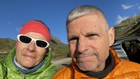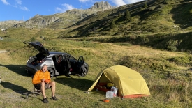 Fort heureusement il fait grand beau et Stefano prend son petit-déjeuner en se réchauffant au soleil.