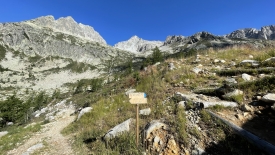 Chaleur ou pas, en moins d’une heure, nous sommes à la cabane, devant le panneau qui signale le départ du sentier « semi-officiel » qui monte au Gerenpass.