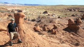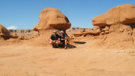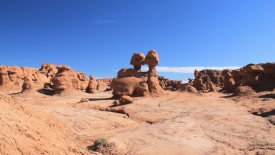 Pour notre première visite de Goblin Valley, nous commençons par un petit sentier tout sympa, qui suit un petit canyon. Nous passons entre des dunes de sables pétrifiés, que l’érosion n’a pas ménagé.