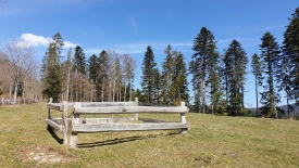 Le ciel, d’un joli bleu franc, nous invite à sortir. Je propose à Stefano de monter à La Dôle, valeur sûre lorsque nous avons traîné à la maison. Mais il en décide autrement et prend la direction d’Arzier, tout proche également. Stefano se gare à l’extrémité du parking du Creux des Abériaux pour que je puisse m’asseoir sur le tronc pour me chausser.