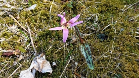 Le chemin d’où ont surgi les chevaux est en fait une piste forestière plutôt en bon état. Elle surplombe le ruisseau de la Combe, et le sentier qui le longe, sentier par où nous étions montés il y a quelques semaines également, en partant par le sentier du Garde Henri Bally. Elle arrive au contrebas du pâturage de La Dunanche, là où poussent les Dents de Chien, fleurs que nous n’avons vues nulle part ailleurs.