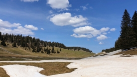 Notre coin à lys martagon est encore sous la neige. Nous sortons de la forêt et arrivons sur la combe. Nous nous arrêtons pour l’admirer. Un groupe de randonneurs arrivent en sens inverse. Je lance : c’est la plus belle combe de tout Le Jura. Vraiment ? , interrogent-ils d’un air sceptique. Hum… Ils ne savent pas !